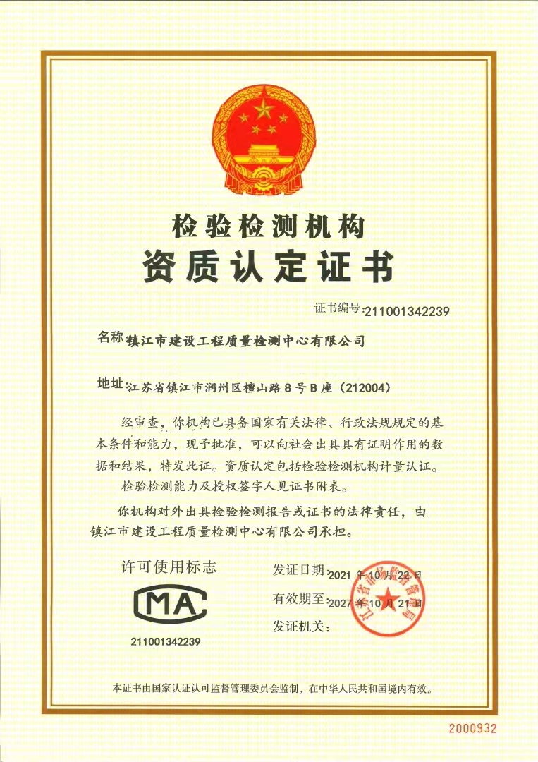 检验检测机构资质认定证书